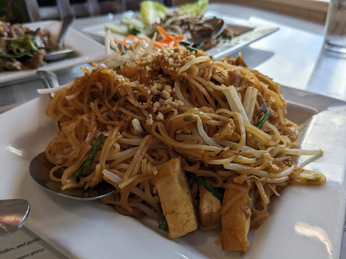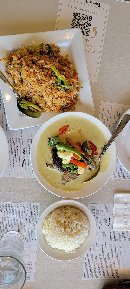 The menu covers a broad range of Southeast Asian dishes, from rich Northern Laotian soups like Khao Soi to vibrant Thai classics such as Pad See Ew with tofu and spicy Drunken Noodles. This is a place for diners who appreciate authentic, freshly made plates with a good balance of spice and sweetness—options like the Pad Chu Chee and Green Curry Fried Rice are examples that locals have enjoyed for their bold, well-seasoned profiles. Vegetarian and vegan choices stand out too, especially the vegan Pad Thai and fried tofu satay, reflecting a thoughtful inclusivity on the menu.
