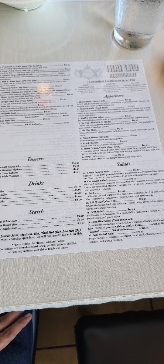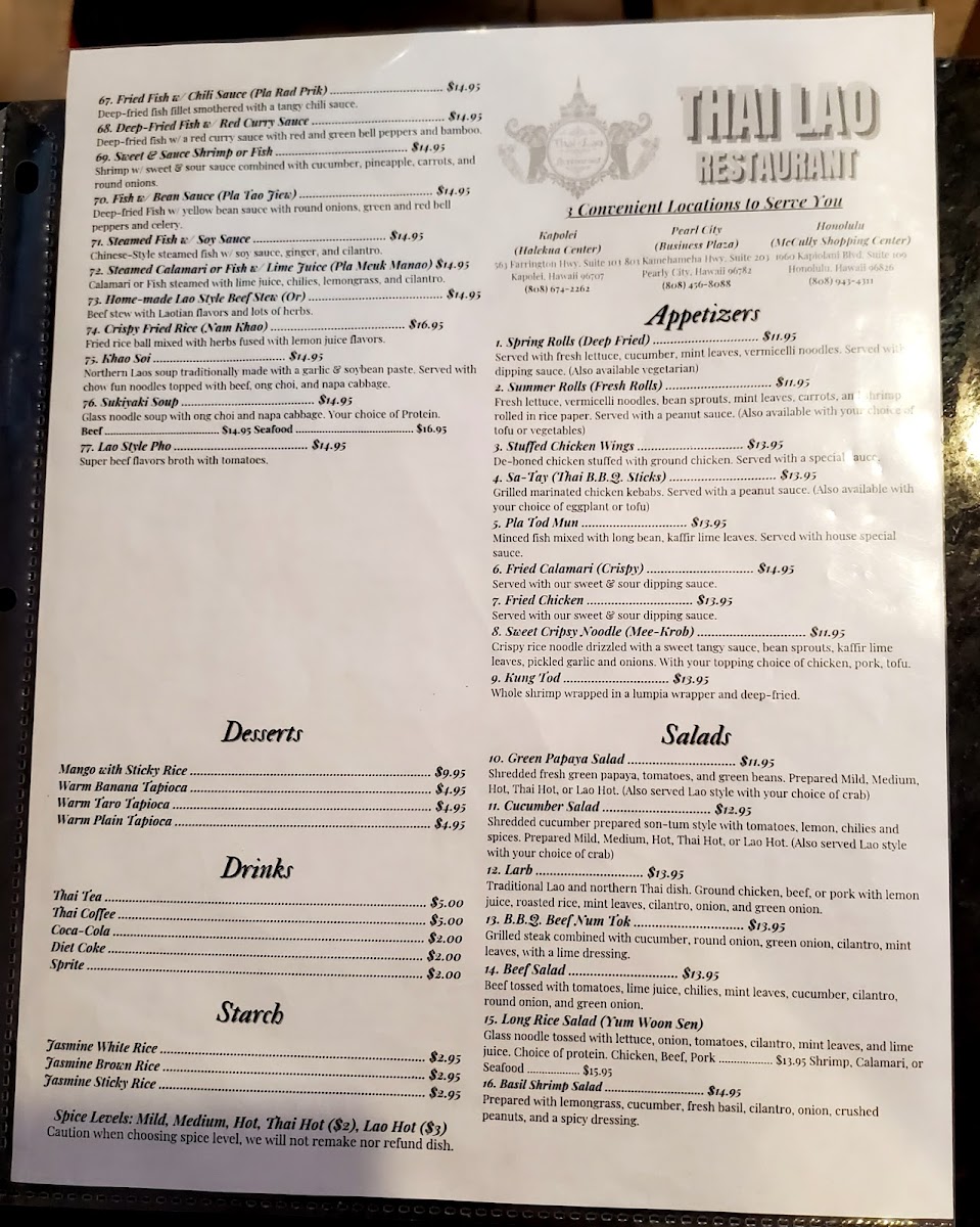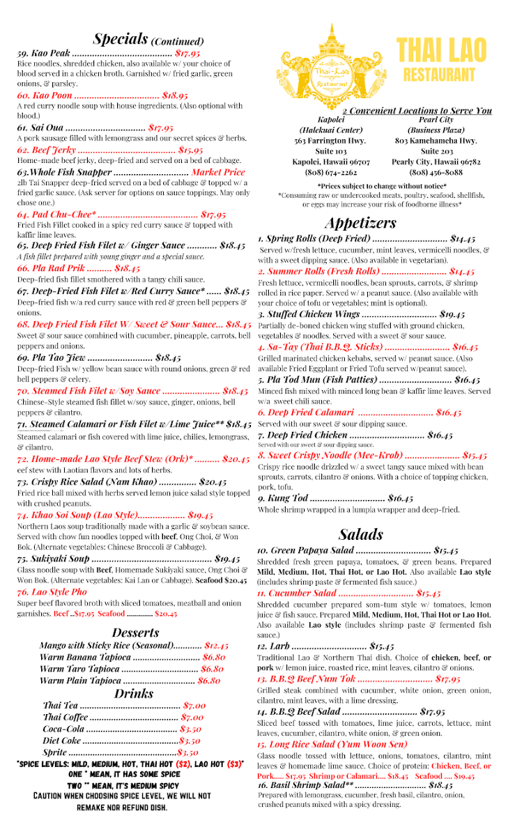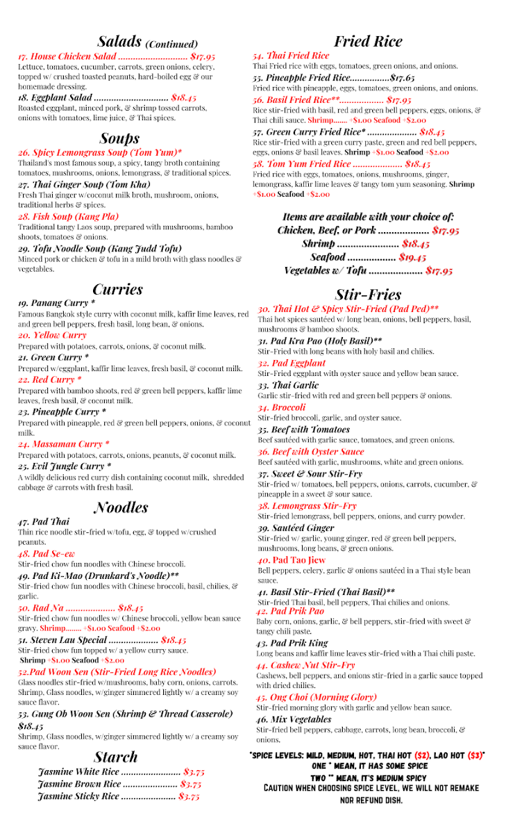 Thai Lao Restaurant Menu